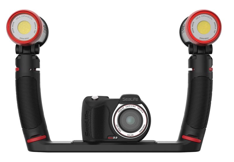 The Micro 3.0 is available as a camera only or in two available turn-key sets that are ready for your next dive adventure. The camera is available packaged with a single 3000 lumen Sea Dragon light, or with two Sea Dragon 2500 lumen lights, both offer very wide beam angles for complete coverage of your subject, and both sets allow further expansion with more lights and accessories.